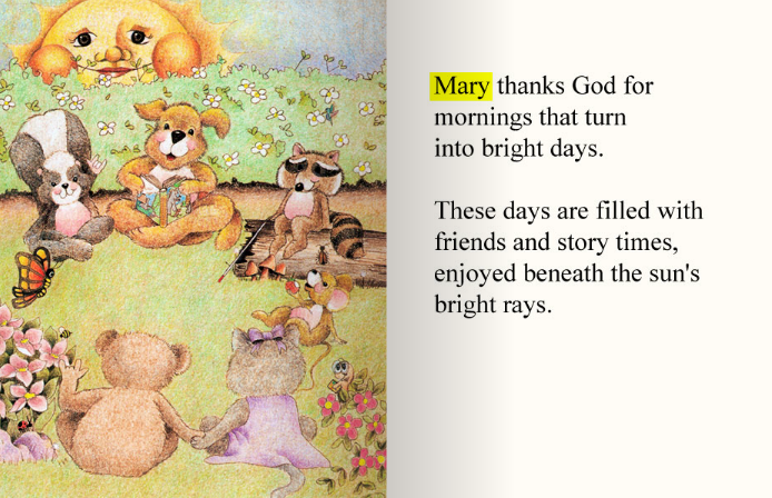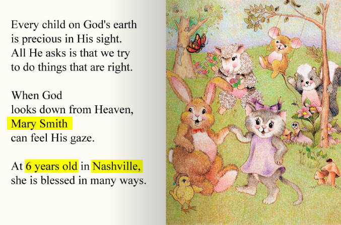 A personalized story discussing things to be thankful for.